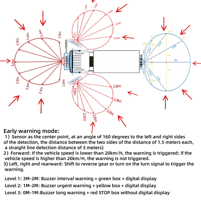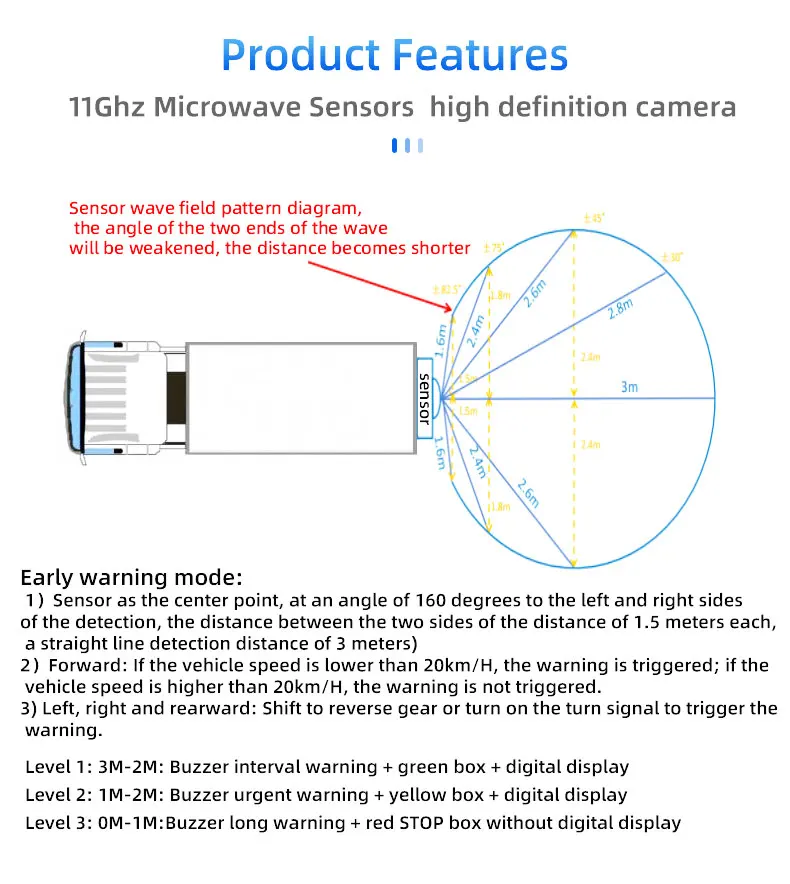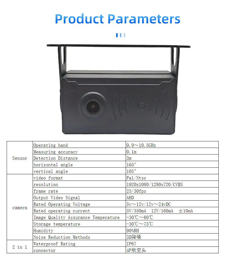 11Ghz radar Ai Camera Truck Waterproof Blind Spot Monitoring Truck Anti-collision Visual Reversing radar Image