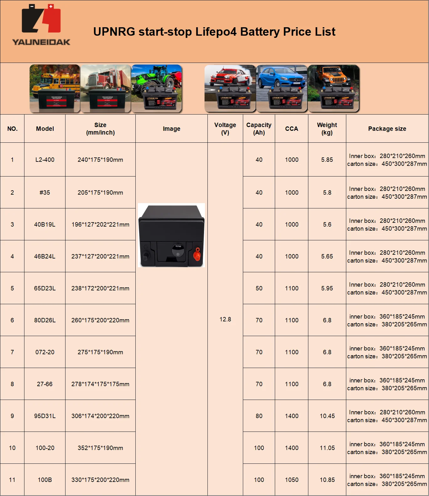 L2-400 12V 40Ah LiFePO4 Solid State Start-Stop Car Battery Pack