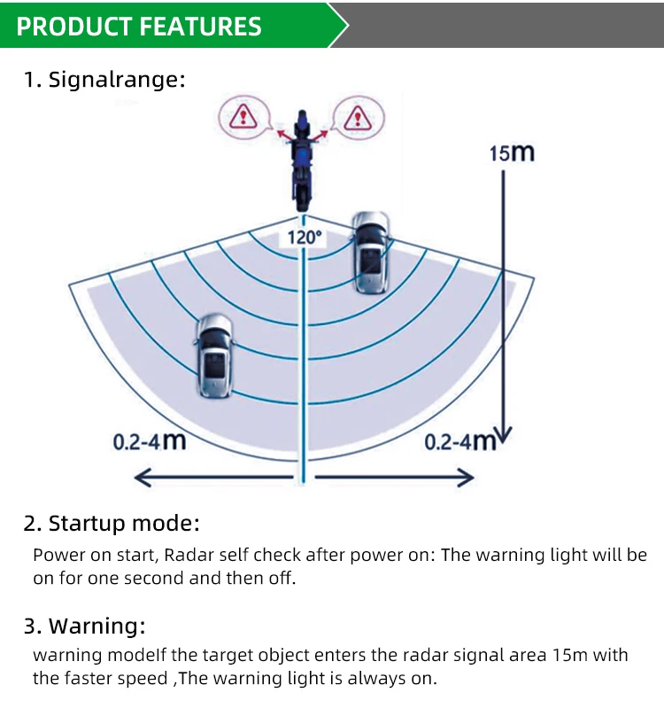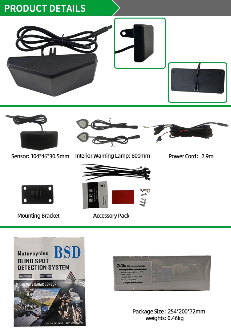 24Ghz Single radar BSD System with Warning Lamp Motorcycle Blind Spot Detection System