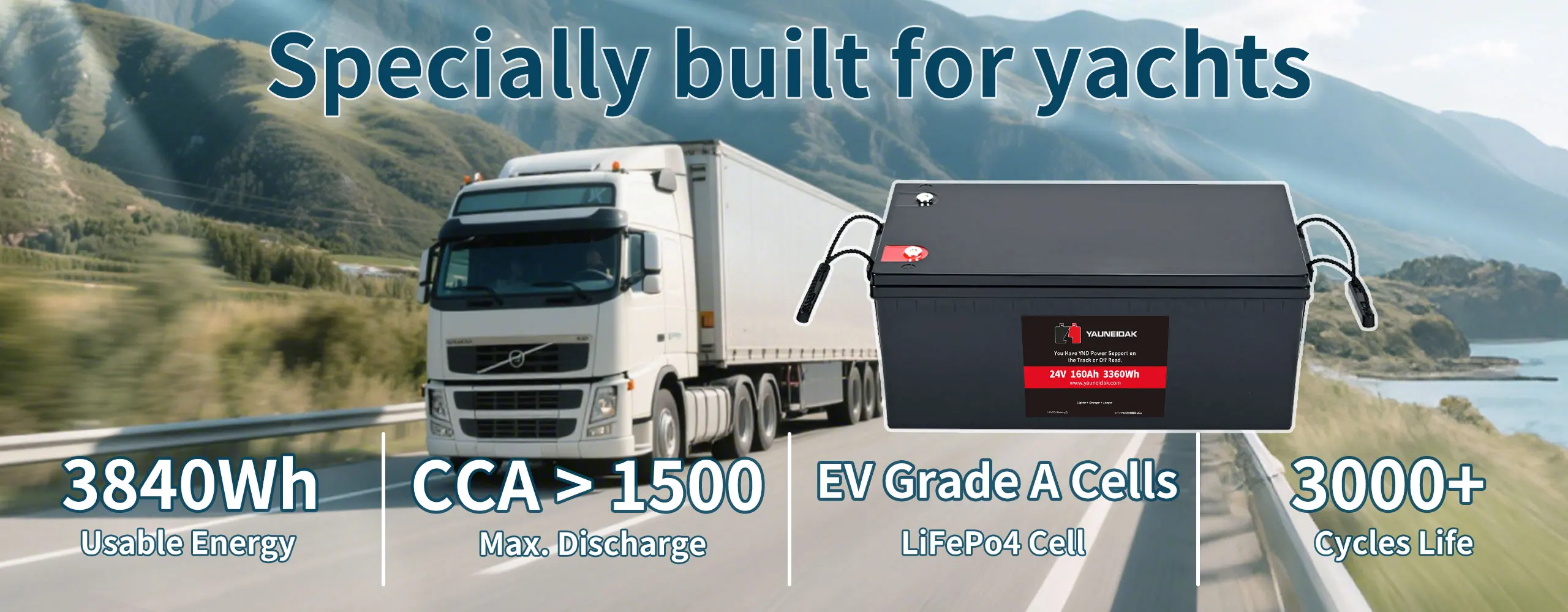 YAUNEIDAK 24V 160Ah High-Performance LiFePO4 Truck Battery