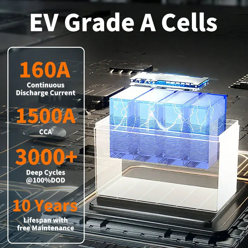 3. Start-Stop Resilience: Proprietary BMS supports 2000A high-current starts without power loss or cell damage.