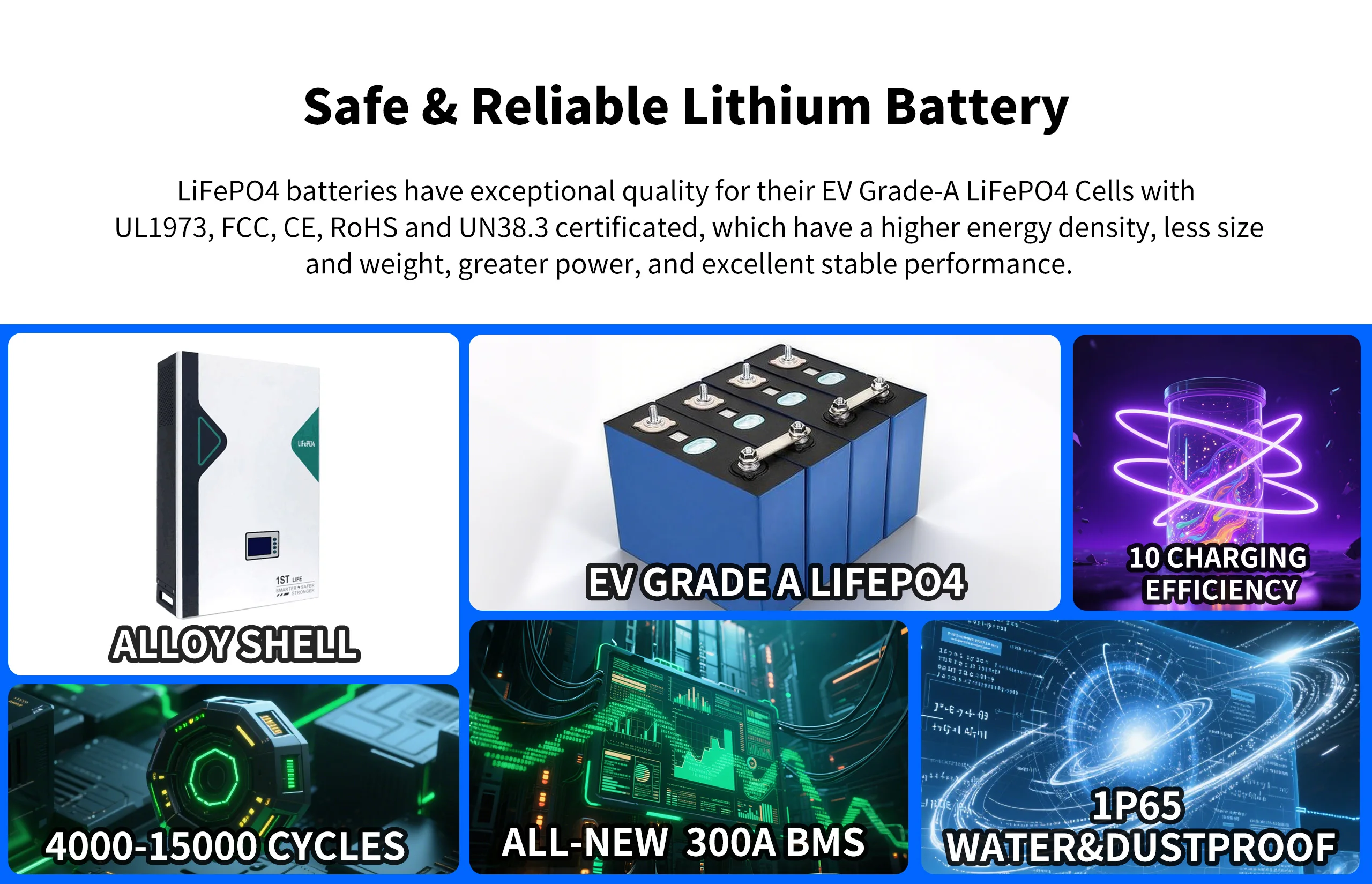 25.6V 200AH Solar Power System Lithium Ion Battery 51.2v 100AH Home Use Complete Set Eco-Friendly with Solar Panel Batteries