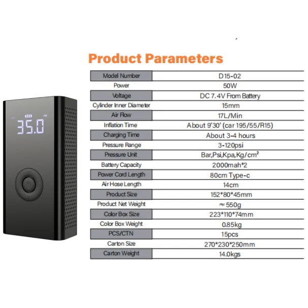 Car Tire Air Pump with Digital Pressure Gauge, LED Light and Auto Shutoff - for Cars, Motorcycles, Bicycles