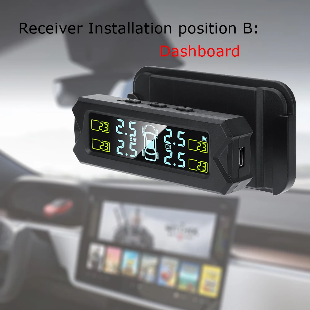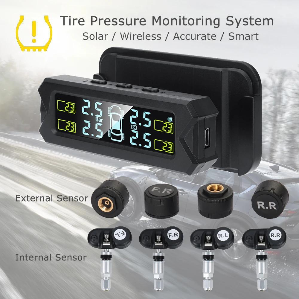 High-Precision Solar Powered TPMS Tire Pressure Monitoring Built-in Sensor Sticker Windshield Detection Windshield Tire Gauges