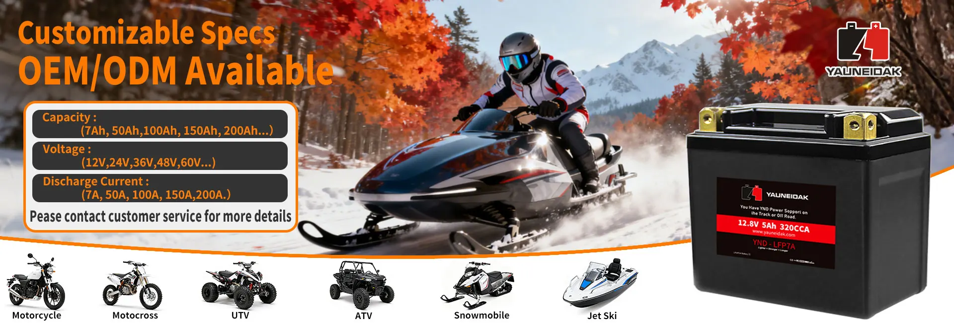 Yauneidak 12.8v 30Ah LFP30L-BS CCA1000 Snowmobile Motorcycle Lithium Battery LiFePO4-20 12V-48V Electric Car Battery High Charge