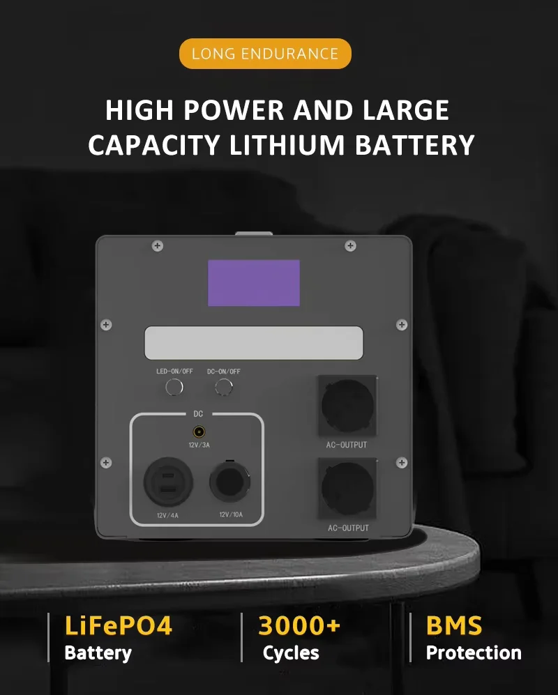 Portable 1Kw 1.3Kwh 2KW Lifepo4 Solar Power Station MPPT Controller Flashlight for Outdoor Camping Picnics Works Car Battery