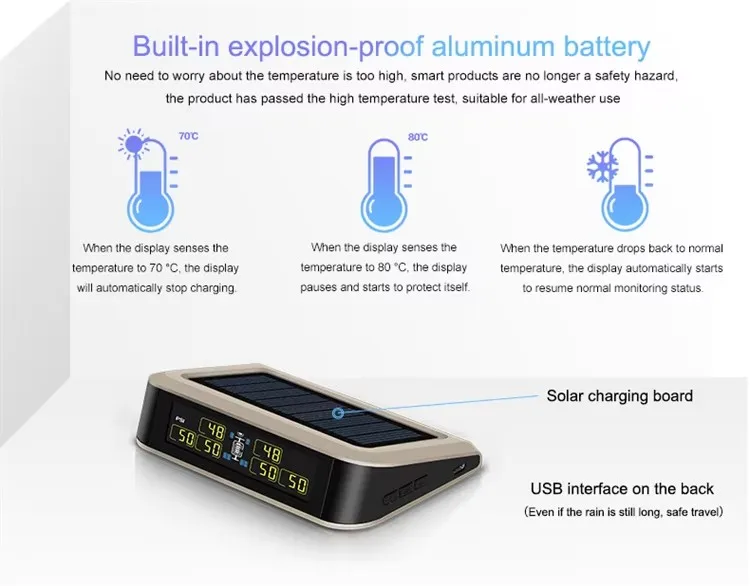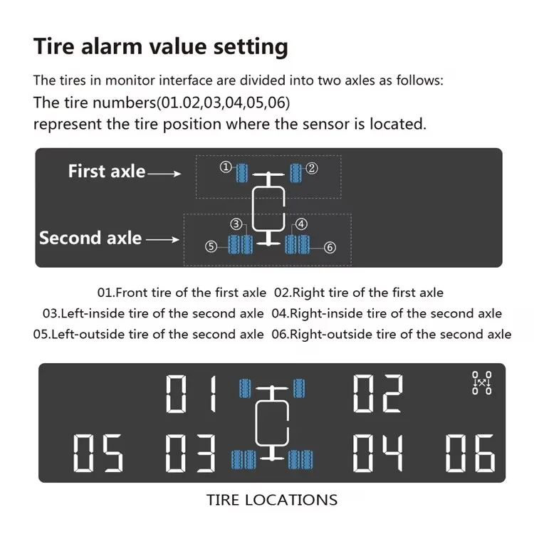 T601T6-WF Wireless Tire Pressure Monitoring System for Rv 6 Tyre Sensors Solar With External Sensor Truck Trailer Tpms