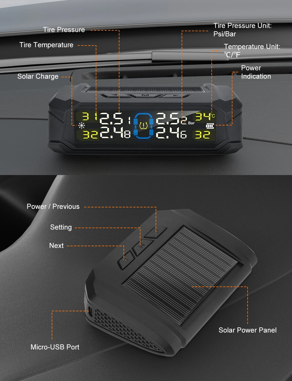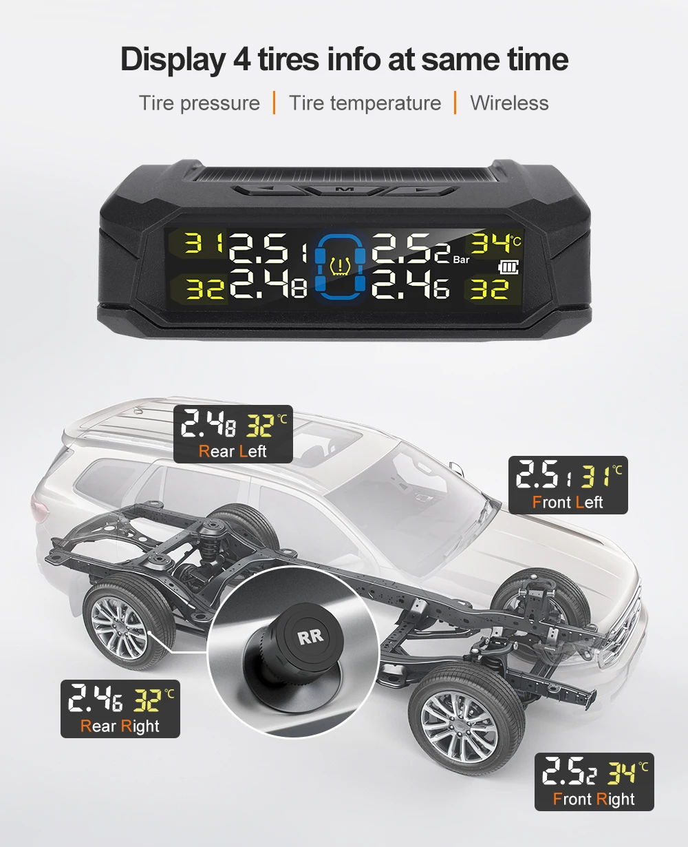 Tire Pressure Monitoring System Wireless Tire Pressure Detector Car Tire Pressure Tpms Built-in External Detector